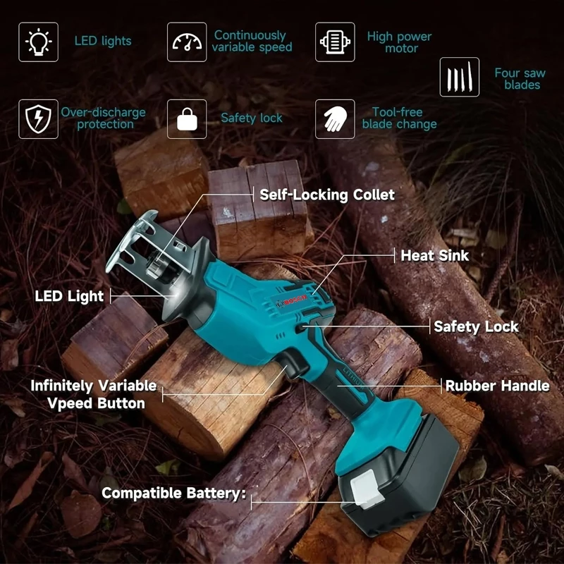 Type: Rechargeable Cordless Reciprocating Saw W/ 5 Blades